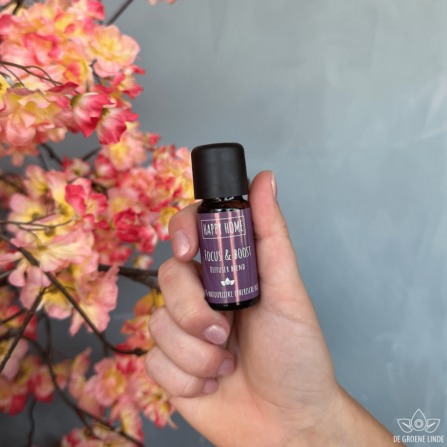 Deze etherische olie is mijn favoriet wanneer ik me goed moet concentreren. Maar ook als ik een duf hoofd heb of moe ben, is dit een heerlijke geur om even mee op te frissen. De etherische oliën Rozemarijn, Pepermunt en Eucalyptus staan bekend om hun verfrissende eigenschappen. Ook Citroen draagt hieraan bij; je hoofd wordt weer helder en je merkt dat je concentratie verbetert. Lavendel voegt een vleugje zachtheid toe, waardoor je misschien ook wat meer rust in je hoofd ervaart.