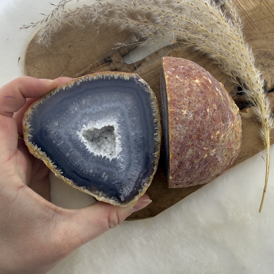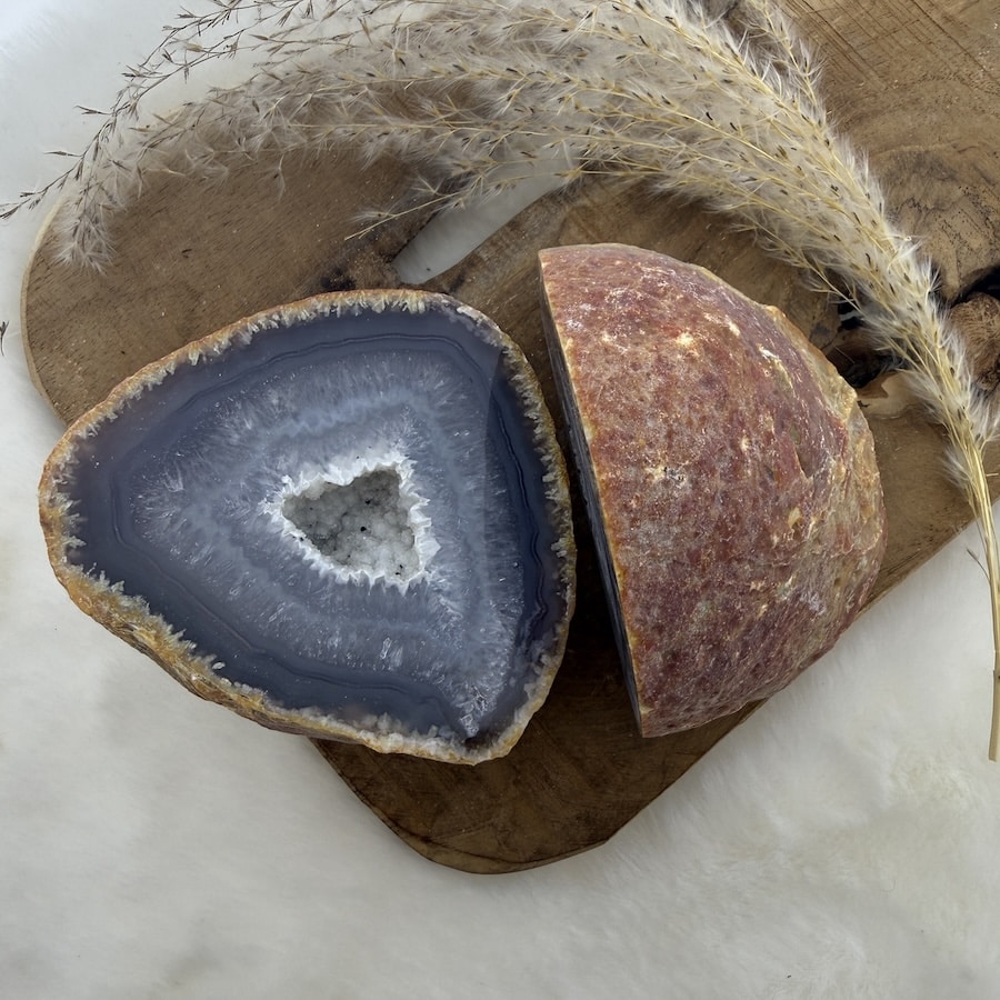 De naam “agaat” komt van het Griekse “Achatès”, vernoemd naar de rivier in Sicilië en het eerste gebied waar de steen bekend werd. Door de eeuwen heen gebruikten mensen agaat als gelukssteen, beschermingssteen en hulpmiddel bij heling, dankzij de aardende en stabiliserende kracht van deze steen.