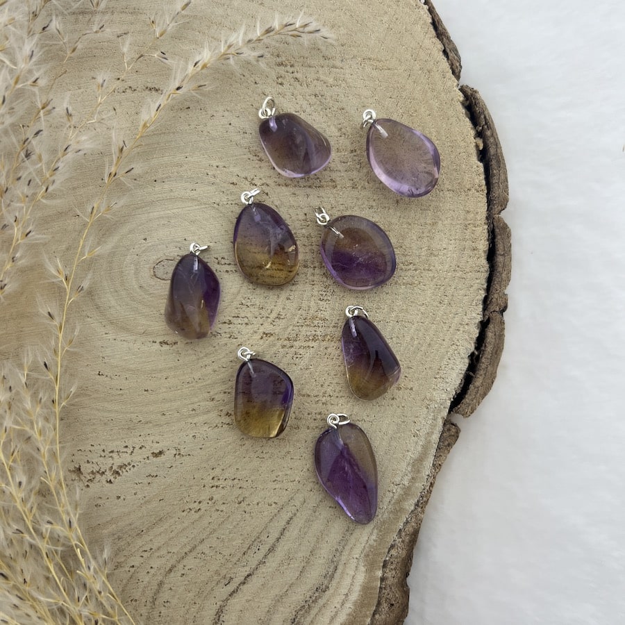 Ametrien bestaat uit een combinatie van amethist en citrien en verenigt de eigenschappen van deze twee stenen in zich.