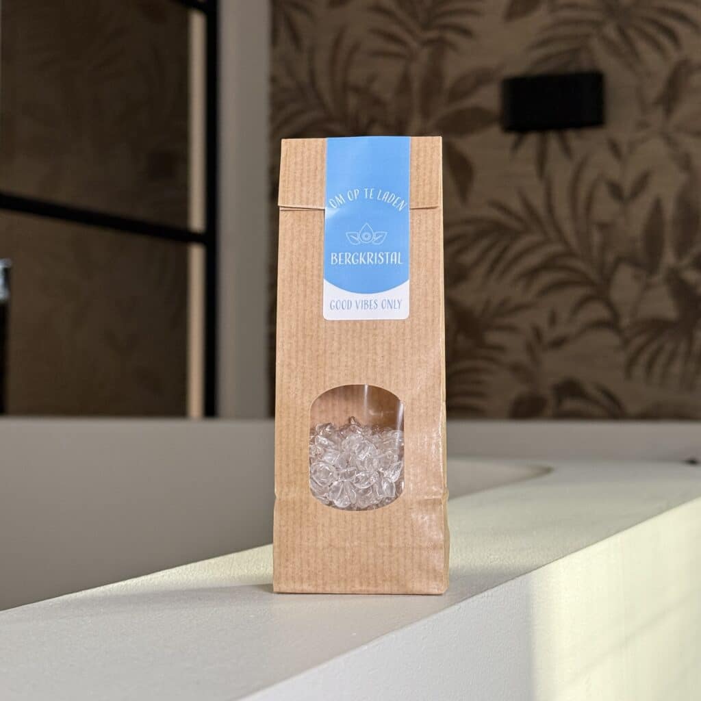 Een andere effectieve methode is het gebruik van Bergkristal. Dit zakje bevat een Bergkristal grid, bestaande uit kleine steentjes. Bergkristal staat bekend om zijn zuiverende en versterkende eigenschappen. Door je kristallen of sieraden met kristallen in een bakje of schoteltje met deze Bergkristal steentjes te leggen, kunnen ze hun energie weer volledig opladen. Bergkristal fungeert als een natuurlijke energiebron die andere kristallen helpt hun optimale vibratie te bereiken.
