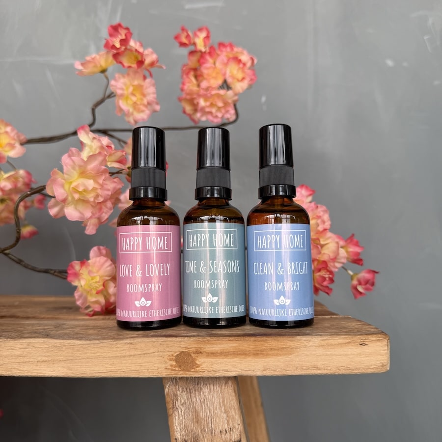 "De complete set roomsprays van de Happy Home met 10% korting!"