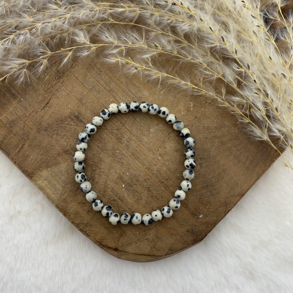 Dalmatiër Jaspis is een beschermende en aardende steen die evenwichtiger maakt. Het beschermt tegen straling en negatieve energie en helpt deze energie uit het lichaam te verwijderen. Daarnaast helpt de steen mensen die te rationeel zijn en mensen die hun gedachtestroom niet kunnen stoppen, meer tot rust te komen. Dalmatiër jaspis werkt opbeurend en geeft energie. Hierdoor kan het depressie verminderen en nachtmerries verminderen.