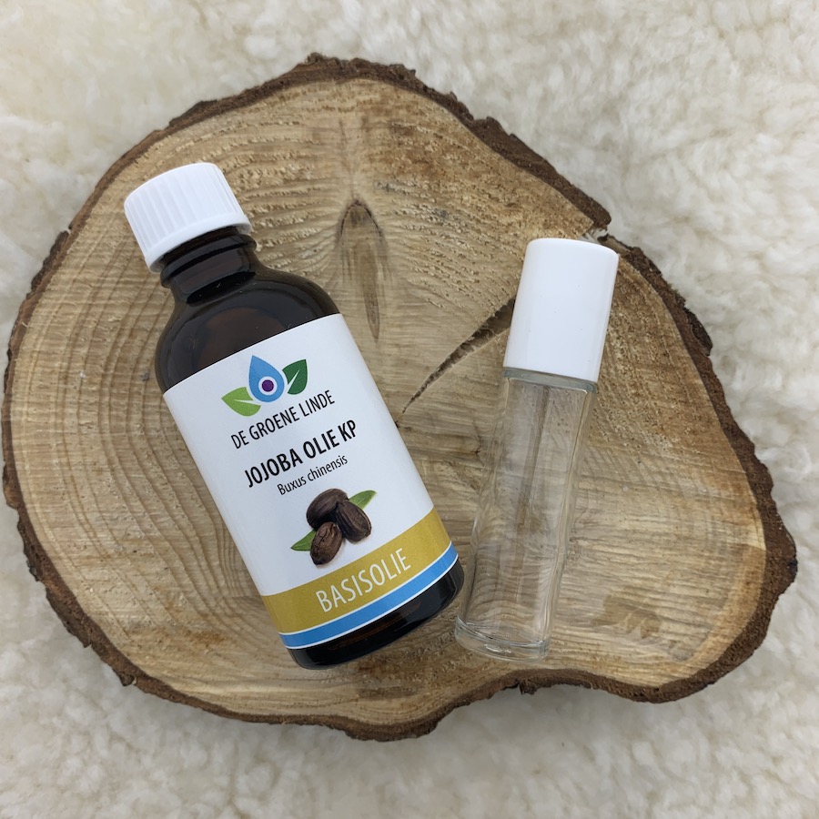 Voor wie maak je de roll on, als je een roller maakt voor een volwassene of voor een kind vanaf 8 tot 12 jaar. Of juist voor een nog kleiner kind? Wil je een roll on maken voor een kwetsbaar ouder persoon dan gelden er ook weer andere hoeveelheden. Kortom, gebruik deze richtlijnen en dan komt het helemaal goed. Plak het etiket op het flesje en noteer wat je gebruikt hebt. Dan kan je de roller altijd nog een keer maken als deze goed is bevallen.