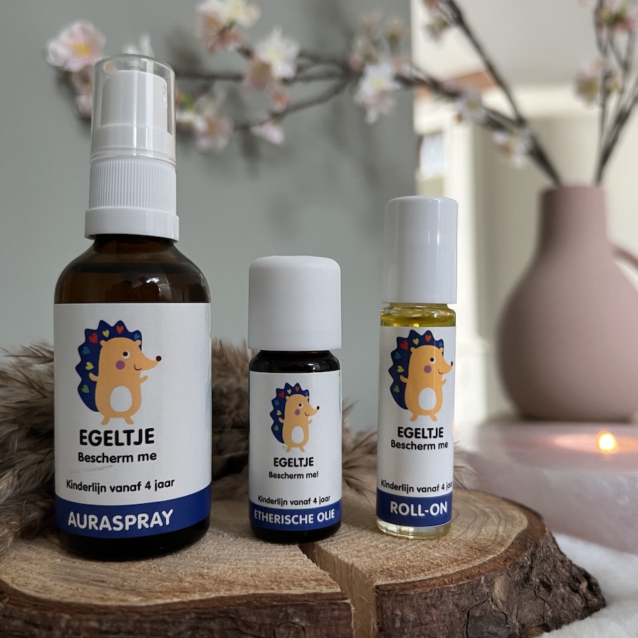 Auraspray: Een effectieve en snelle manier om de Egeltje bescherming om het kind heen te krijgen. Spray een paar keer boven het hoofd en om het kind heen. Laat je kind de ogen sluiten en de adem 5 tellen inhouden. Zo kan de alcohol verdampen en heeft je kind daar geen last van. Laat de nevel even neerdalen om zo het effect te vergroten.