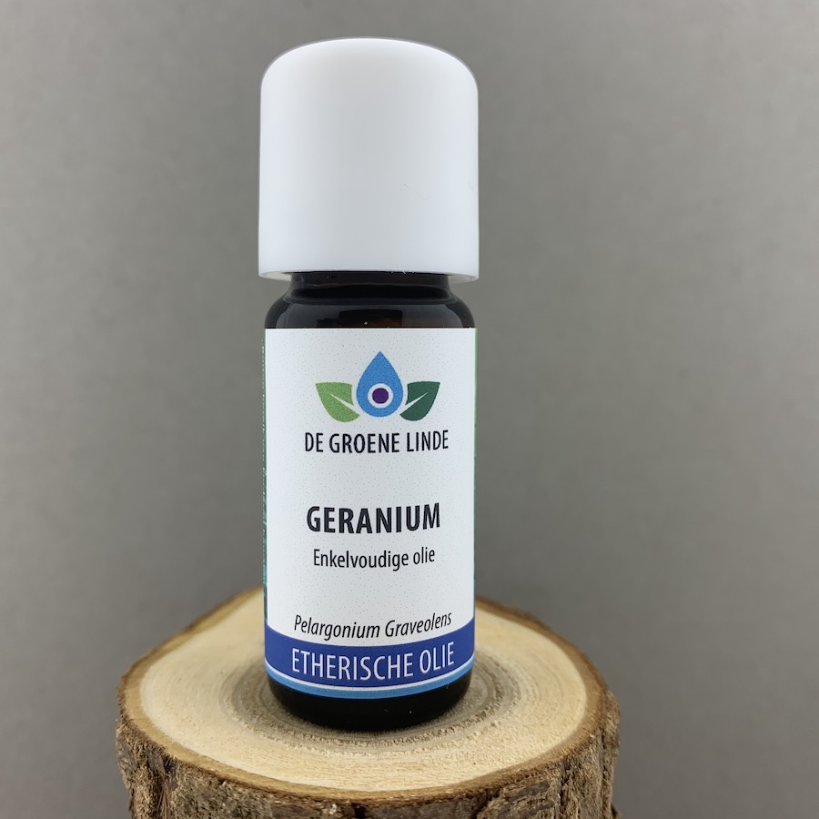 Let op bij het gebruik van Geraniumolie. Bij gevoelige mensen kan Geranium huiduitslag veroorzaken.