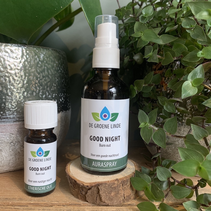 Ik heb de Good Night Burn out auraspray nu een paar weken in gebruik. Een klein ritueel voor het slapen gaan, een fijne, rustgevende geur, én hij helpt me ontzettend goed om uit mijn hoofd en naar mijn buik te gaan met mijn energie. Meestal is het voldoende om hem alleen voor het slapen te gaan te gebruiken, maar mocht ik onverhoopt toch wat langer wakker liggen 's nachts en in de piekermodus te gaan, gebruik ik hem dan nog een keer en helpt hij me om weer rustig verder te slapen.