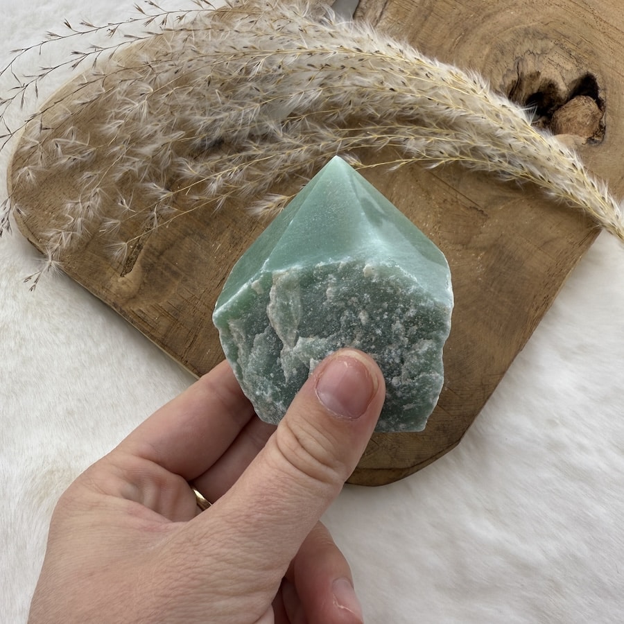 De Groene Aventurijn trekt geluk en voorspoed aan en geeft een blij hart. Ze helpt je ontspannen en je wordt positiever, creatiever en toleranter. Je gevoelens van irritatie en frustratie kunnen verdwijnen en je kunt je met een open hart verbinden met je omgeving en de wereld.