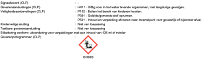 Deze veiligheidstekens moeten op vaten van 1000 liter, maar ook op onze kleine flesjes van 10 ml. Er wordt geen rekening gehouden met de dosering.