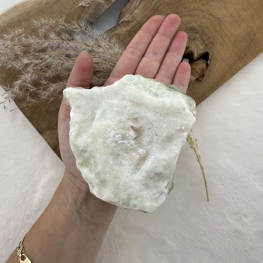 Wow, wat een mooi en zacht steentje. Ik raad je deze aan als je verdriet hebt of als je merkt dat je hartchakra gesloten is. Pistachio Calciet maakt flexibel en helpt bij het loslaten van oude denk- en gedragspatronen. Het herstelt de emotionele balans en maakt positief en optimistisch. Ik open je hart en ik laat op zachte wijze de liefdesenergie stromen. Het is een mooi en zacht steentje, Ik raad je deze aan als je verdriet hebt of als je merkt dat je hart chakra gesloten is.
