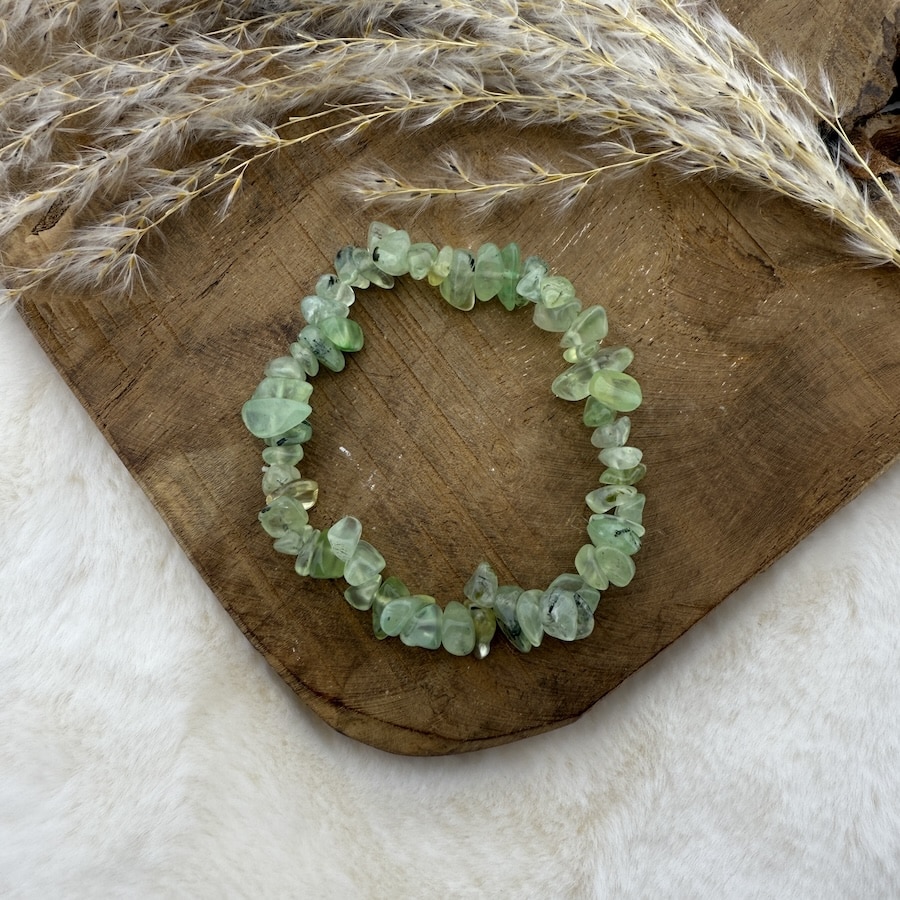 Liefde en vrede gaan stromen bij het geven van healingen, daarom is deze steen een mooi kristal om te dragen als je met mensen werkt. De steen beschermt het aura tegen negatieve energie en maakt het makkelijker om in contact te komen met gidsen en engelen. Prehniet heeft een sterke connectie met de natuur.