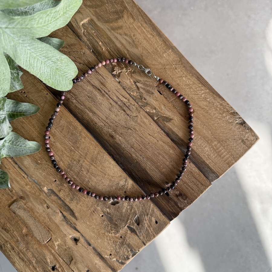 Rhodoniet werkt kalmerend en houdt je hoofd koel om zo je balans weer terug te vinden. Het is een echte crisis steen. Deze steen past goed in een ruimte waar vaak ruzie is en waar de mensen die in de ruimte leven de balast van zich af kunnen laten glijden. Dit is een perfecte steen voor kinderen die snel hun 'chill' verliezen en zo in conflicten belanden.