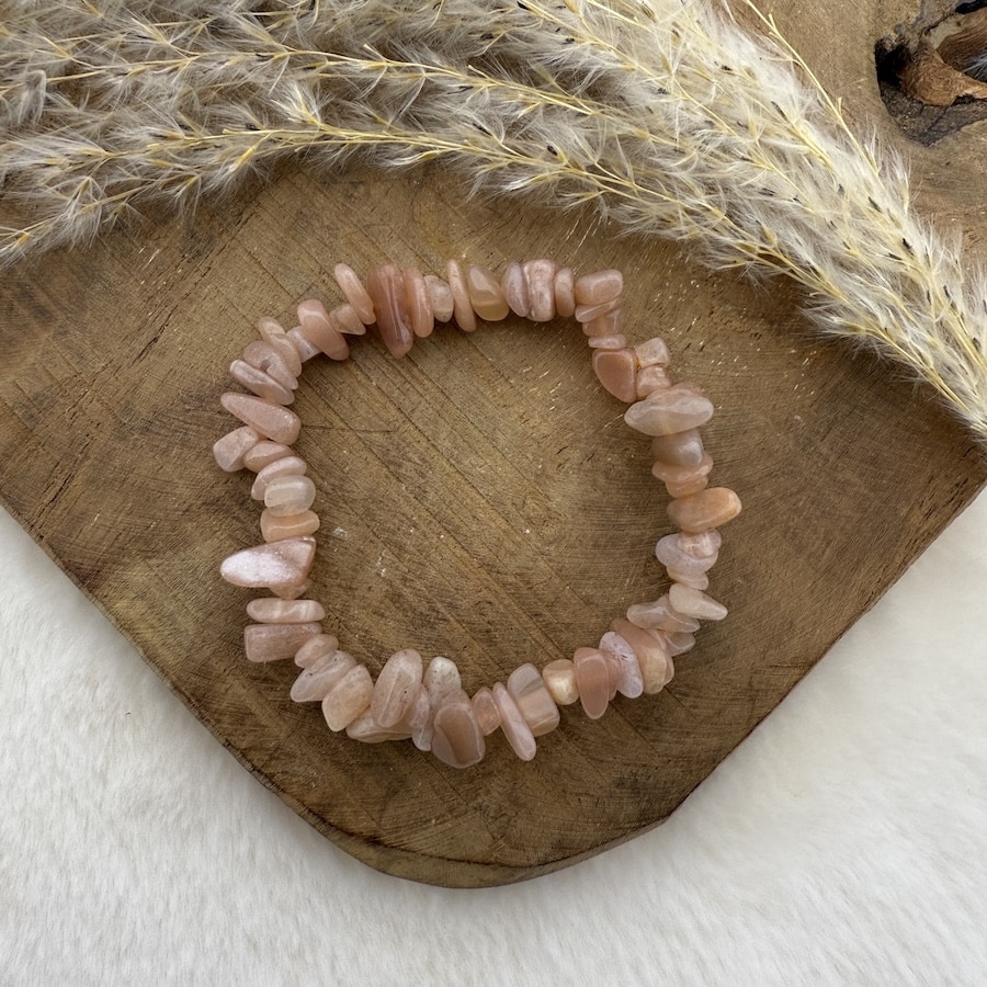 Maansteen is een broze steen, dus is kwetsbaar en kan makkelijk krassen. Het beste is om fel zonlicht en water te vermijden. Lees hier voor meer informatie over reinigen en opladen.