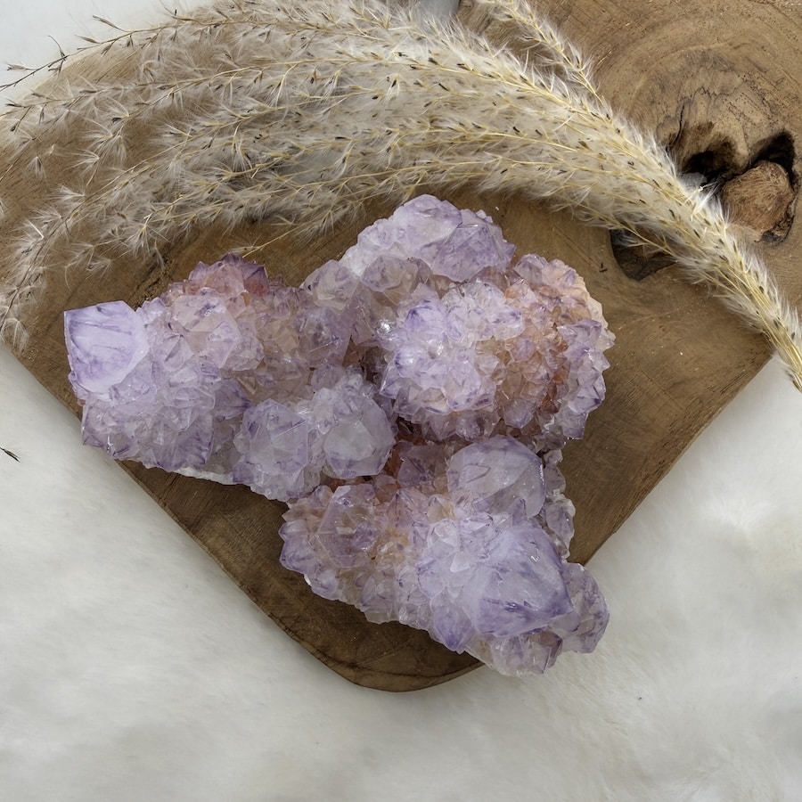 De naam Spirit Amethist zegt eigenlijk al veel. Hij verwijst naar de krachtige, spirituele energie die dit kristal uitstraalt, maar ook naar de Zuid-Afrikaanse roots waar de term “spirit” verbonden is met tradities en de band met de voorouders. De meeste stukken worden gevonden in de regio rond Magaliesberg, een gebied dat beroemd is om zijn kristalrijke bodem.