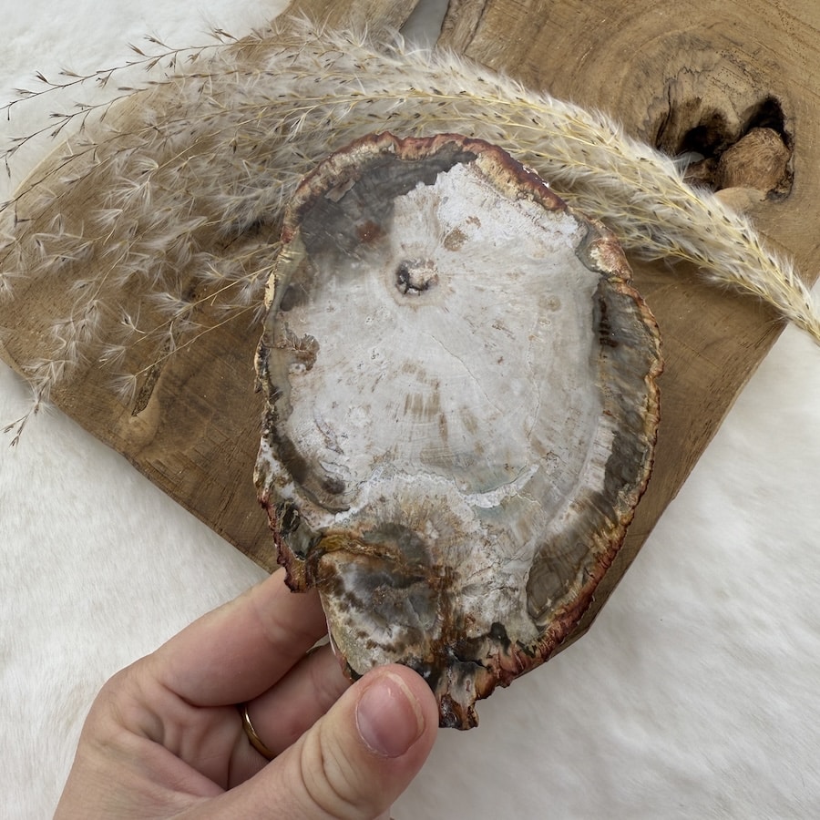 Versteend Hout resoneert voornamelijk met het basis chakra waardoor je niet alleen geaard en stabiel wordt, maar ook een gevoel van veiligheid en emotionele balans ervaart. Het is een steen die zowel lichaam als geest kalmeert en stabiliseert.