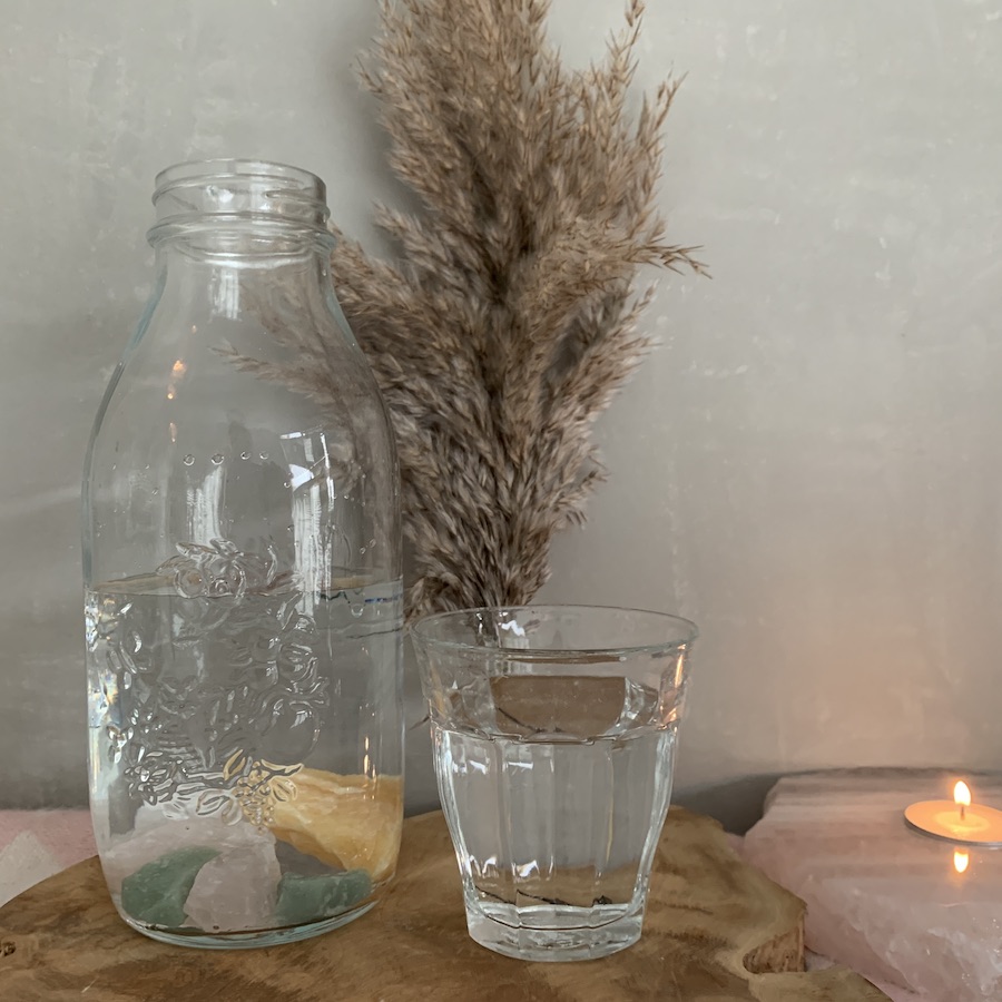 Door verschillende waterkristallen te combineren en toe te voegen aan water, ontstaat er een unieke frequentie die je kunt drinken. Door dagelijks aan het einde van de dag de mineralen uit het water te halen, af te spoelen en droog op te bergen, kan je elke dag vers geladen water drinken.