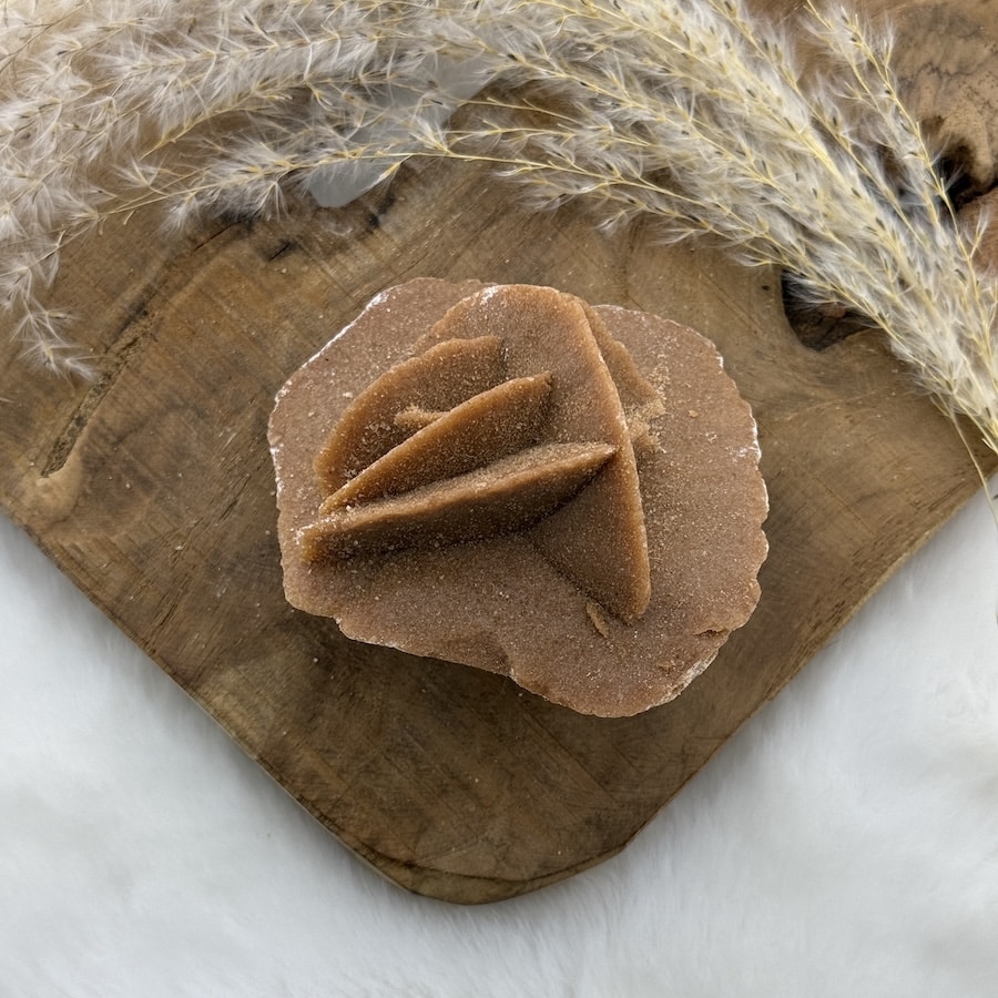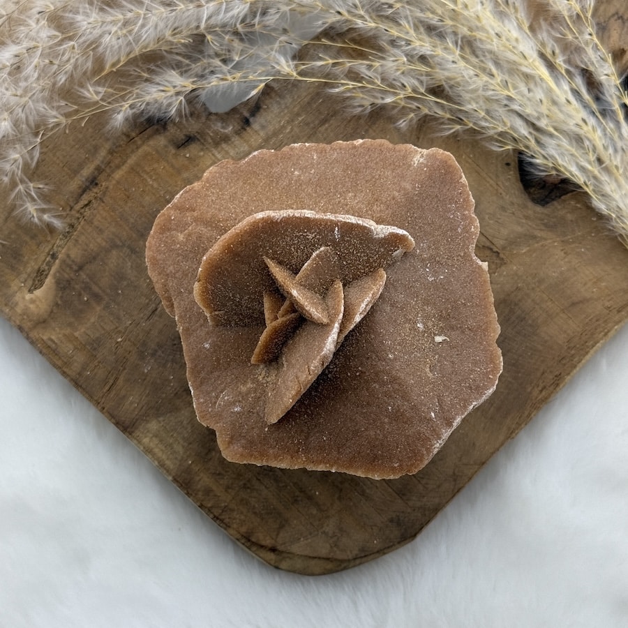Woestijnroos is een vorm van Seleniet en is wit met beige van kleur. De steen heeft een geribbelde structuur en vertoont vaak ronde vormen, een beetje gelijkend op een roos.